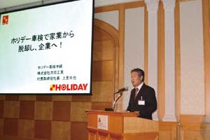 ホリデー車検との歩みを沖縄県の㈱次郎工業の中里尚也社長が講演を行った。