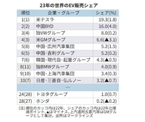 テスラやBYDという2024年で世界1位、2位のEVメーカーにとっては、生産台数が一桁も二桁も違う日本メーカーが率先して作るこの制度に、何の魅力も感じないのはある程度想定できる。
